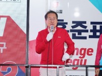 “이인선, 서재헌 후보들도 쌍방향 선거유세 시도”“일자리, 대기업, 대학위기 등의 해결책은 오직 관문공항”홍준표 국민의힘 대구시장 후보는 25일 북구 팔거광장에서 제5차 구군 순회 정치버스킹 ‘만민공동회’에서 국비 투입을 통한 통합신공항 건설 의지를 재확인했다.이날 첫 질문에 한 청년은 “벚꽃 개화시기에 따라 지방대학이 사라진다는데, 대학 소멸위기에 대한 대책이 있는지”라고 묻자 홍 후보는 “지금과 같은 지방대학 육성책은 아무리 해 봤자 될 수가 없다”면서 “노무현정부가 혁신도시를 세워서 돈을 쏟아붓고 공공기관을 지방으로 내려보낸 …