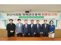 청년층 지역 정착 유도방안 마련 연구 경산시의회 의원연구단체 '밝은미래(대표 양재영)'는 지난 4일 의회 운영위원회 회의실에서 '청년층 지역 정착 유도방안 마련 연구' 최종보고회를 가졌다.밝은미래는 양재영, 권중석, 김상호, 전봉근 의원으로 구성되어 있으며, 청년층의 수도권 유출과 지역활력 저하 문제에 대응하고, 경산시에 맞는 생활밀착형 청년 정책을 마련하기 위해 지난 3월 연구용역에 착수했다.이날 보고회에는 소속 의원들과 용역 수행기관 관계자들이 참석한 가운데 진행되었으며, 지난 6개월여간 수행된 연구 결과를 공유하고 정…