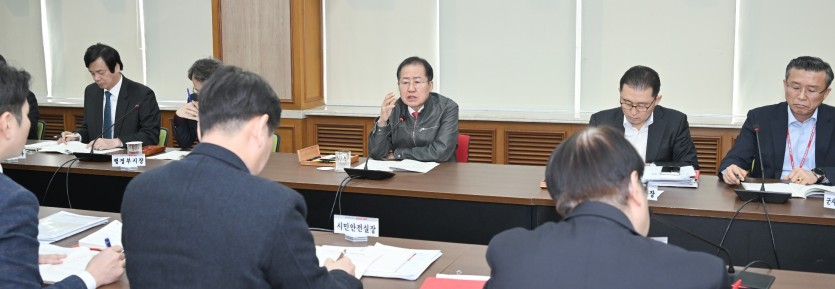 대구시 홍준표 시장은 6일 간부회의에서 ‘2022년도 파워풀 대구 시정 TOP 10’으로 선정된 우수부서를 시상하고 각 실,국,본부 업무 집행 속도에 가속이 필요하다고 강조했다.