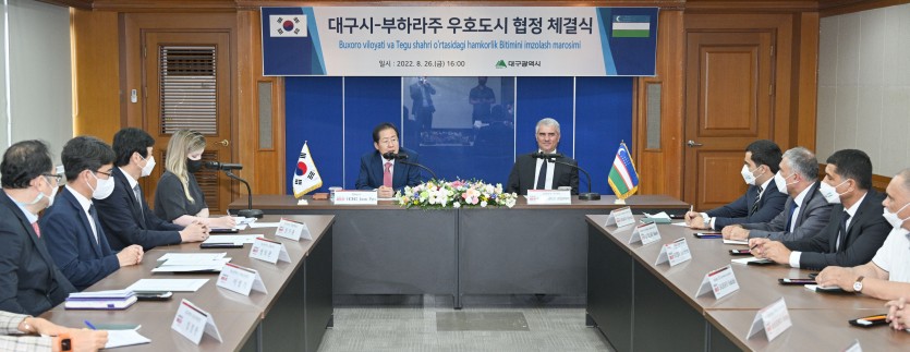 중앙아시아의 신(新)실크로드라 불리는 우즈베키스탄의 부하라주 대표단 일행이 대구시장을 예방하고 대구시와 부하라주 간 우호도시 협정을 체결했다고 26일 밝혔다.