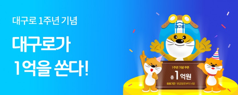 이에 대구로는 시민들에게 감사의 의미를 담아 오는 23일 부터 27일 까지 하루 선착순 만 명까지 재주문 쿠폰을 발행하는 1주년 기념이벤트를 진행하며 이벤트 기간 내 1인 1회만 참여가 가능하다.