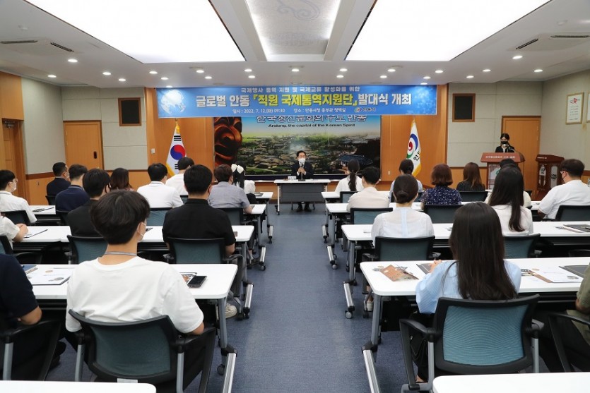 안동시는 12일 웅부관 청백실에서 "2022 제16회 안동 국제교육도시연합(IAEC)세계총회"와 "제18회 세계역사도시회의"등 각종 국제교류 행사에서 외국어 통역을 지원할 글로벌 안동, "직원 국제통역지원단"발대식을 개최했다고 밝혔다.