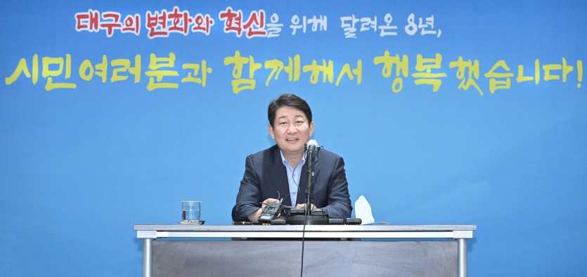 민선 6, 7기를 지내오며 그동안 시민 여러분과 함께 웃고, 함께 울던 아쉬움의 순간들이 주마등처럼 지나며 그 소중했던 시간들을 영원히 잊지 못하며 대구시민의 시장으로 일할 수 있어서 너무나 행복했으며 대구시민과 언론인 여러분께도 진심으로 감사의 인사를 전했다.