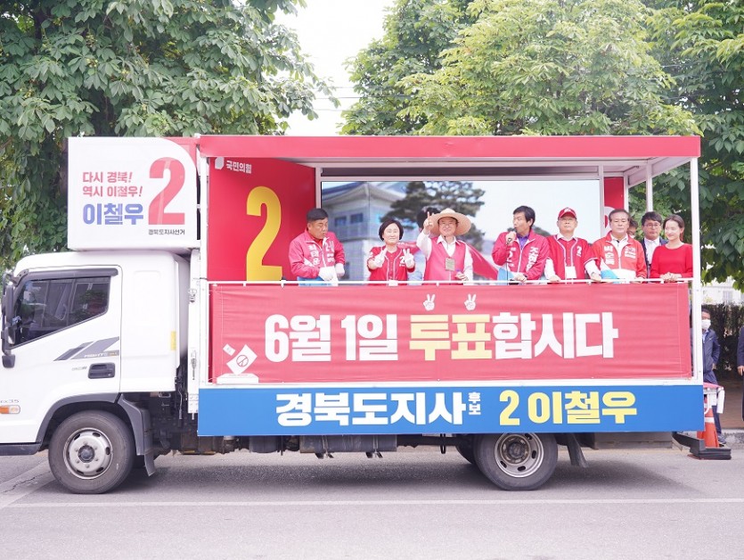국민의힘 소속 기호 2번 이철우 경북도지사 후보는 공식선거 마지막 이틀간 경북 도내 시·군 전역을 순회하는 거리 순회유세에 나섰다.