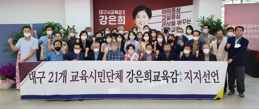 대구교육시민연합, 대구시인성교육범시민실천엽합 등 대구 21개 교육시민단체대표자들이 중구 강은희 대구시교육감 후보 선거사무실에서 지지 선언을 했다고 26일 밝혔다.