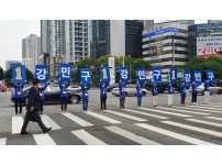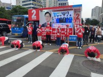 청색신호 이용한 횡단보도 선거 운동이 시선집중.