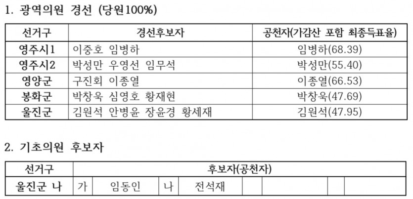 국민의힘 경북"의성,칠곡 군수 경선후보자" 선정 및 경선결과 발표