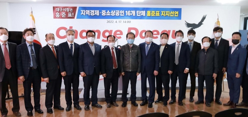 또한 “50년 후의 대구를 내다보는 혜안으로 변화와 혁신을 이끌고 이를 힘있게 추진할 대구시장으로, 국정과 행정 경험이 풍부하면서 강력하고 유능한 리더십을 갖춘 홍준표 후보를 지지한다”고 선언하며 대구지역 중소상공인 단체들의 지지선언도 이어졌다.