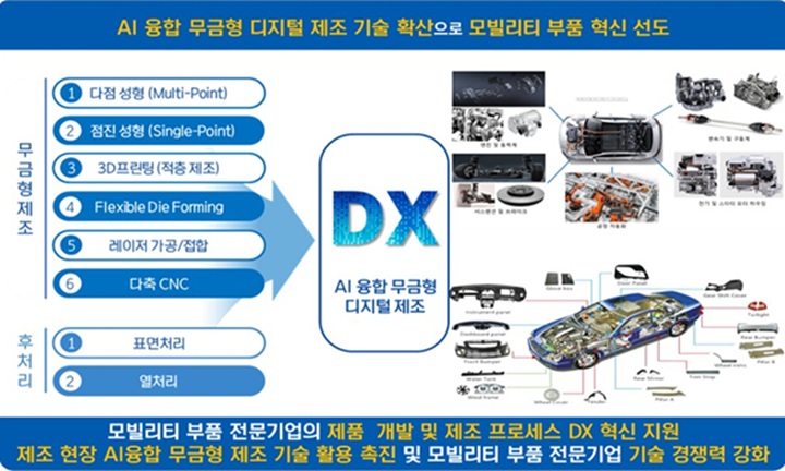 금형 없이 부품을 생산하는 기술에 AI를 접목, 미래모빌리티 산업에 대응하는 새로운 제조 생태계를 구축하는 것이 목표다.