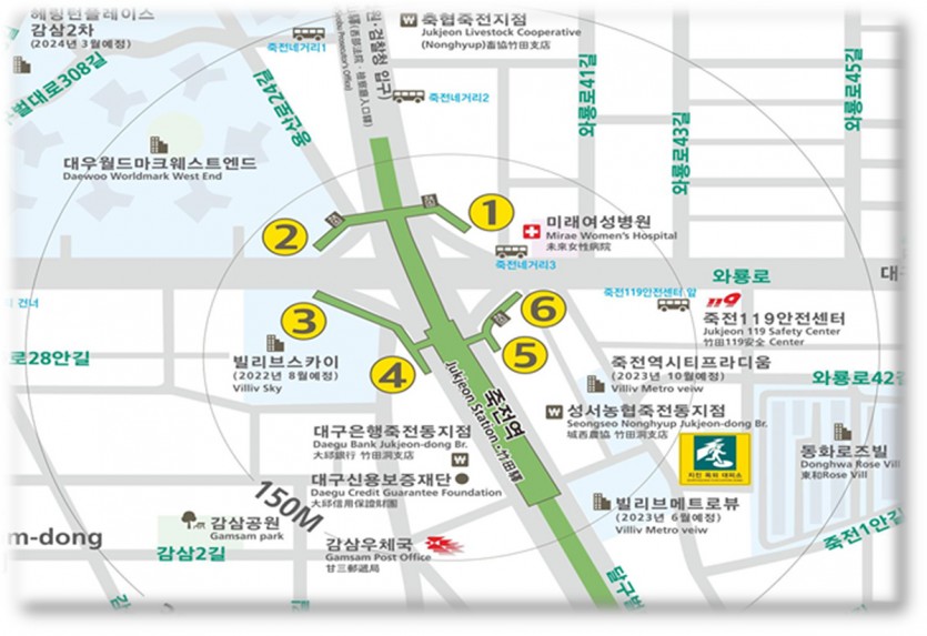 대구도시철도 2호선 '죽전역 서편 출입구 건설공사가 완료돼 22일부터 사용 개시된다.