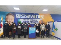 더불어민주당 대구대전환선거대책본부에서 최근 대구지역 요양보호사 200여 명이 이재명 더불어민주당 대통령 선거 후보에 대한 지지 선언을 했다.선언문에 따르면 “이번 대선은 코로나19 위기를 극복하고 4차 산업혁명 시기의 새로운 성장 동력을 마련해야 하며 공정과 정의가 실현되는 사회를 만들어 낼 수 있는 후보가 대통령이 되어야 한다.”라고 전했다.이어 이재명 후보가 발표한 노인복지정책 특히 노인들의 빈곤을 해결하기 위해 발표한 60대 초반 장년 연금 지급과 현재 80만 개의 노인 일자리를 140만 개까지 늘리겠다는 정책에 대해 적극적인…