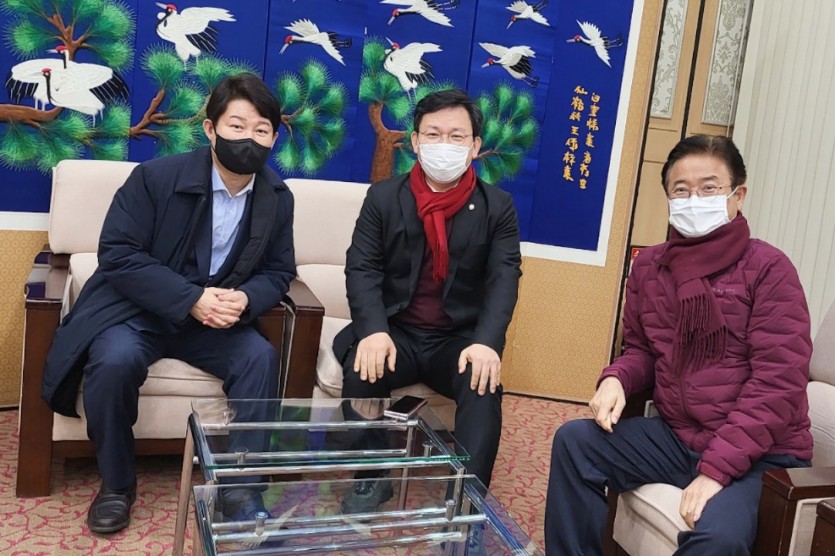 권영진 대구시장과 이철우 경북도지사는 6일 군위군 대구 편입을 위해 광주까지 김형동 의원을 비롯한 국회의원들을 설득하고자 방문했다.