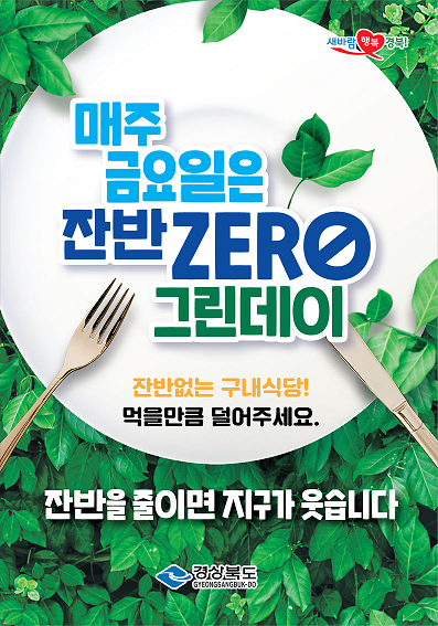 한편, 경북도는 지역의 저탄소 친환경 농식품으로 건강한 한 끼를 남김없이 먹는 식문화을 실천하기 위해 지난 3일부터 도청 구내식당을 시작으로 매주 금요일 ‘잔반 Zero 그린데이’를 지정해 운영하고 있다.