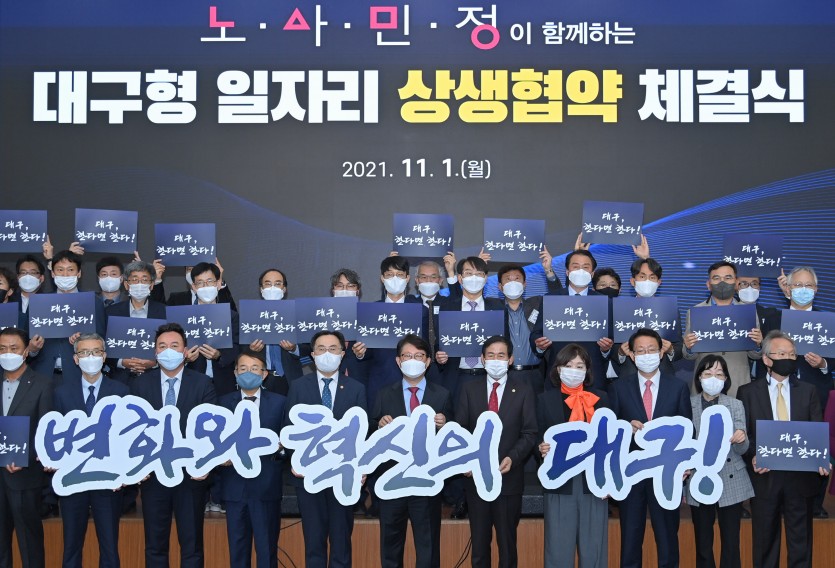 대구시는 EXCO에서 미래신산업으로 새로운 도약을 위한 ‘대구형 일자리 상생협약식을 개최했다고 1일 밝혔다.