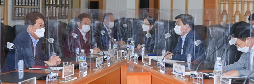 권영진 대구시장과 이철우 경북도지사, 김영만 군위군수는 대구·경북통합신공항만이 시도민의 미래이고 살길이기 때문에 군위군 대구 편입이 시도민의 뜻인만큼 입법절차를 조속히 추진해 줄 것을 건의했다.