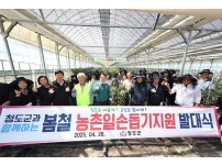 청도군이 28일매전면 온막리 일대에서 ‘2025년 봄철 농촌일손돕기 발대식’을 열고 본격적인 농번기 일손 지원에 나섰다. 군은 농촌 인구 감소와 고령화로 인한 일손 부족 문제를 해결하기 위해 연인원 약 3만 명을 투입할 계획이다.이날 발대식에는 김하수 청도군수, 강동호 매전농협 조합장, 농업기술센터 직원 등 50여 명이 참석했으며, 참석자들은 산딸기 전정 및 수확 작업 등으로 농촌일손돕기를 시작했다.오는 5월부터 7월 말까지 읍면사무소 및 농촌일자리지원센터를 통해 일손돕기 알선창구를 운영할 예정이며 접수된 농가를 대상으로 …