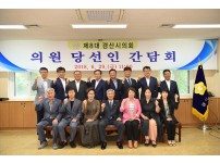 경산시의회는 지난달 29일 제8대 경산시의회 개원을 앞두고 의회사무국 운영위원회실에서 당선자 간담회를 개최했다. 이번 간담회는 제7회 전국동시지방선거에서 당선된 초선의원 10명을 비롯한 당선인 15명을 대상으로 당선인들의 원활한 의정활동을 지원하기 위해 마련됐으며, 당선의원 뱃지 전달, 상견례, 의회사무국 직원소개, 청사견학 순으로 진행됐다.또한, 경산시의회의 기본현황 및 의회조직, 관련예산과 의장 부의장 선거내용, 의원재산신고 안내, 의원의 권리와 의무 등 향후 의정활동에 필요한 내용들을 설명했다. 최덕수 제7대…