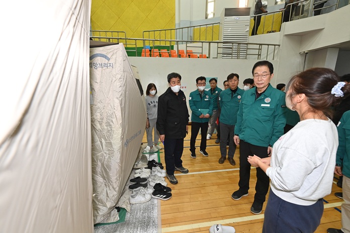 임종식 경북교육감은 23일, 산불 발생 지역 인근의 학교 상황을 점검하고, 의성실내체육관 등 대피시설을 방문해 이재민을 위로했다.