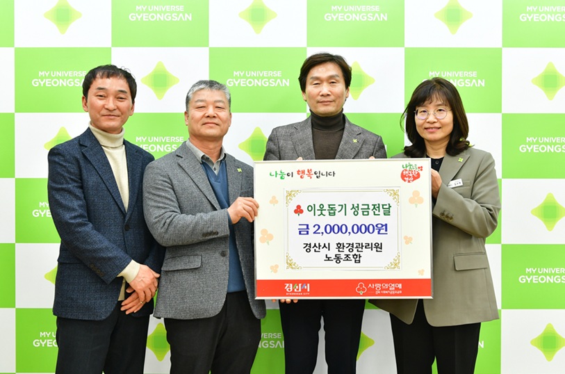 경산시청 환경관리원 노동조합원은 총 111명으로, 아침 6시부터 대로변, 이면도로, 주택가 골목 등을 청소하며 쾌적한 환경 유지에 힘쓰고 있다. 이들은 2013년부터 꾸준히 이웃사랑을 실천해 오며 따뜻한 사회 만들기에 기여하고 있다.