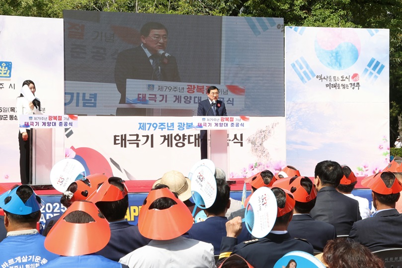 경주시는 15일, 제79회 광복절을 맞아 황성공원 독산 국기게양대에서 기념식 및 준공식을 개최했다고 밝혔다.