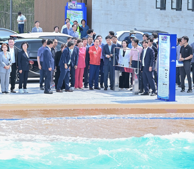 특히 국내 최초로 하천 내 설치된 파도풀은 최대 파고 1.2m까지 파도를 만들어 짜릿한 스릴을 제공해 유아를 동반한 가족 단위 이용객들을 위해 유수풀, 가족풀, 어린이 물놀이기구 7종 등이 설치됐다.