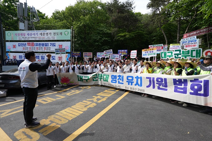 최기문 영천시장은 “시민들뿐만 아니라 종교계 그리고 지역을 넘어 포항, 경주에서도 대구 군부대 영천 유치에 적극 협력하고 있다.”며, “대구 군부대 유치가 영천으로 확정될 때까지 총력을 다하겠다.” 고 말했다.