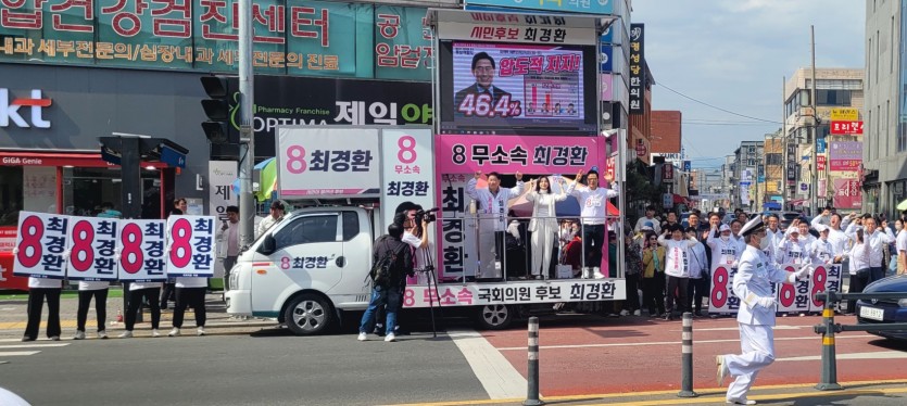 경산시 무소속 최경환 후보 필승유세, 조지연 후보 "경산시 선관위에 고발"