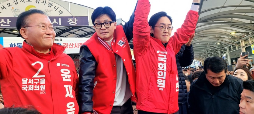 이날 윤재옥 후보(달서을) 사무실 방문을 시작으로 대구 서문시장과 동성로, 경산시를 방문해 '민주당 심판’을 위해 TK 지지층 결집이 필요하다고 호소했다.
