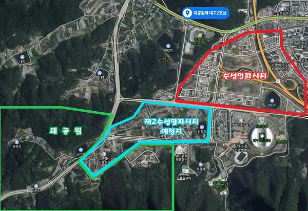 수성알파시티는 대공원역에서 최단거리 기준 1km 정도 떨어져 지난해 9월 종전 수성의료지구에서 수성알파시티로 지구 명칭이 변경되면서 역세권의 대표 지구로서의 위상을 갖게 됐다.
