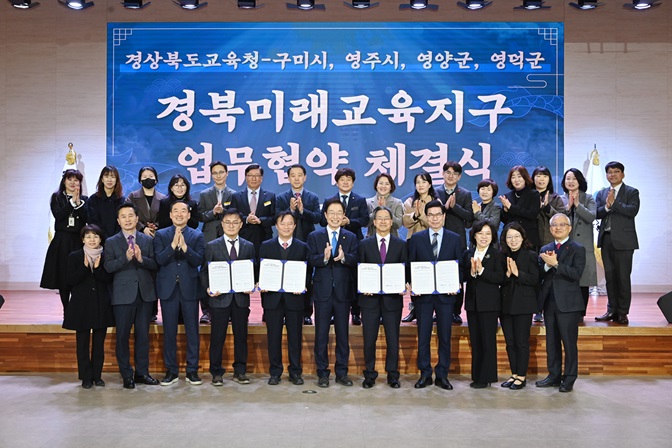 경북교육청은 19일 도 교육청 웅비관에서 경북교육청과 구미시, 영주시, 영양군, 영덕군 간 경북미래교육지구 사업추진을 위한 업무 협약을 체결했다고 밝혔다.