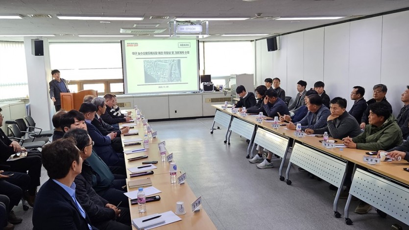 대구시는 7일 대구도매시장관리사무소에서 유통종사자 대표가 참석한 가운데 ‘대구 농수산물도매시장 이전 타당성 및 기본계획’에 대한 최종 보고회를 개최했다고 밝혔다.