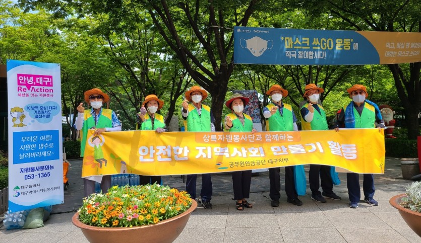 내달 말까지 매주 목요일 6주간 진행되는 이번 봉사활동에는 공단 관계자 및 대구지역 퇴직공무원으로 구성된 대경상록자원봉사단원 등 60여명이 참여해 폭염에 취약한 어르신과 일반 시민들을 대상으로 대구시에서 제공하는 ‘달구벌 맑은 물’ 배부와 함께 2.28기념 중앙공원 일대 코로나 예방 방역활동도 실시한다.