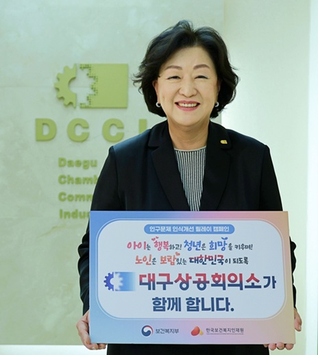 박윤경 대구상공회의소 회장이 보건복지부와 한국보건복지인재원이 공동 주관하는 ‘인구문제 인식개선 릴레이 캠페인’에 동참했다고 24일 밝혔다.