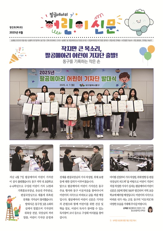 이번 창간된 어린이 신문은 기존 ‘팔공메아리’와는 별도로 운영되며, 기획부터 편집, 취재, 기사 작성에 이르기까지 전 과정에 어린이들이 직접 참여하는 참여형 매체로 제작됐다.