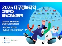 3,000여 명 취업준비생 참여…AI면접·MBTI검사 등 다채로운 프로그램 운영대구시와 경북도가 공동 주관하는 ‘2025년 대구·경북 지역인재 합동채용설명회’가 8일 오전 10시부터 영남대학교 천마아트센터에서 열린다. 이번 행사에는 대구·경북 지역 대학생과 취업준비생 3000여 명이 참여할 예정이다.올해 설명회에는 한국가스공사, 한국도로공사 등 16개 공공기관을 비롯해 대구교통공사, 경북개발공사 등 지방공기업 5곳, 대구창조경제혁신센터에서 상담한다.또한 민간 스타트업 4곳 등 총 25개 기관이 참가하며 참여기관들은 지역인재…
