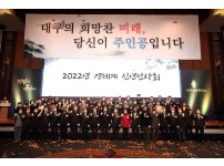 대구상공회의소는 13일 호텔인터불고 대구 컨벤션홀에서 권영진 대구시장과 주요 기관장, 국회의원, 대학교 총장, 언론사 대표, 상공의원, 경제단체장, 한국노총 대구의장, 기업 대표 등 주요 인사들 200여명이 참석해 ‘2022년 경제계 신년인사회’를 개최했다.이날 행사는 오프닝 공연을 시작으로 개회선언과 국민의례, 참석자 소개, 대구산업대상 시상식과 2021년 지역을 빛낸 기업소개, 그리고 인사말씀과 덕담, 세레모니, 기념촬영 순으로 진행됐으며 대구산업대상 시상은 상공업 진흥과 경제발전에 기여한 상공인의 사기진작을 위해 경…