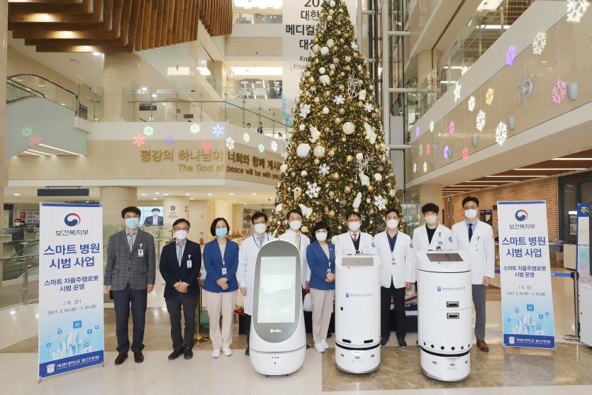 로봇 도입은 지난해 9월 보건복지부 지정 ‘스마트병원 선도모델 개발지원 사업’의 일환으로 추진됐으며 국책사업 기간 동안 지정맥 인증과 같은 생체정보 활용방안에 대한 실증, 자율주행을 위한 맵핑(Mapping) 작업 등을 수행하며, 물류이송 로봇에는 ‘동산(DongSan)’을 의미하는 ‘DS’ 이름을 붙이고, 방문 환자들을 안내하는 로봇은 ‘올리브’로 명칭했다.
