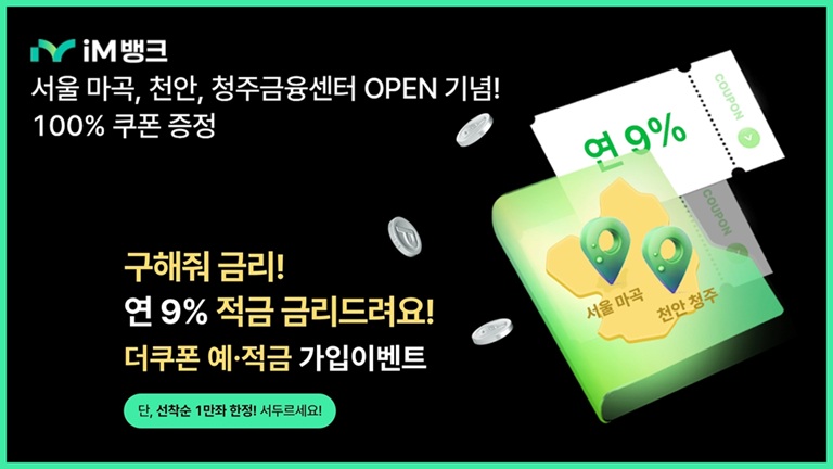 iM뱅크, 마곡∙천안∙청주 지점 오픈 기념 ‘더쿠폰예∙적금’ 출시