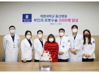 다빈치SP 최신장비로 수술 정확도는 높이고 환자 회복은 빠르게 계명대학교 동산병원(병원장 황재석)이 부인과 로봇수술 2,000례를 달성했다고 밝혔다.동산병원은 지난해 5월 로봇수술 4,000례를 달성한 이후, 현재까지 4,600례 이상 달성하며 로봇수술 활성화에 박차를 가해 부인과 로봇수술만 2,000례를 달성했다고 밝혔다.계명대학교 동산병원 부인과 로봇수술은 국내를 넘어 세계적 수준을 유지하고 있으며 그 중에서도 구멍 하나로 로봇 팔을 넣어 수술하는 ‘단일공 로봇수술’은 세계적으로도 인정받고 있다. 지난 2014…