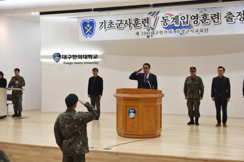 변창훈 총장은 “학교의 명예와 개인의 발전을 위해 최선을 다해 훈련에 임해줄 것을 당부하며, 혹한기의 매서운 날씨와 어려운 훈련 여건을 잘 견디고 몸 건강히 잘 다녀오라”고 격려했다.