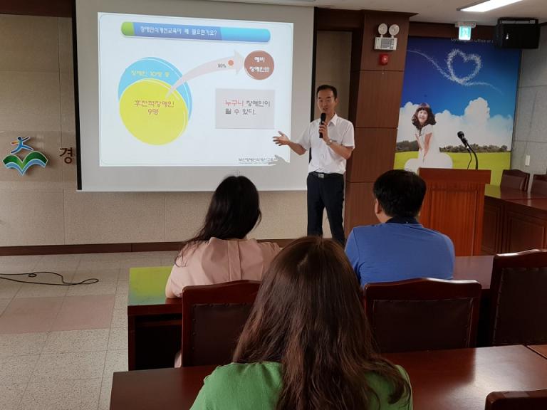 한편 이금옥 교육장은 “장애발생의 88%이상이 사고나 각종 질병 등에 의한 후천적 원인에 의한 발생하는 것으로 누구나 장애인이 될 가능성이 높다고 한다. 이번 교육을 통해 장애인에 대해 긍정적인 인식을 갖고 ‘모두가 함께 더불어 살아가는 세상 만들기’에 우리 경산교육지원청 직원들이 앞장 서 달라”고 전했다.