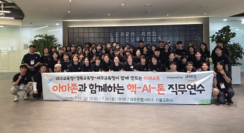 대구시교육청은 25일부터 26일까지 양일간 아마존 웹 서비스(AWS) 서울 본사에서 대구·경북·제주 지역 교사 60명을 대상으로 ‘아마존과 함께하는 핵-AI-톤 직무연수’를 개최했다.