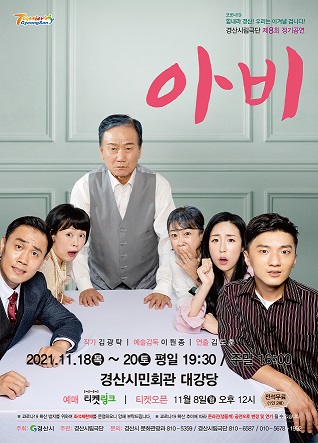 경산시립극단 제8회 정기공연 ‘아비’가 오는 18일부터 20일까지 평일 오후 7시 30분, 토요일 오후 4시에 경산시민회관 대강당에서 전석무료 공연으로 펼쳐진다.