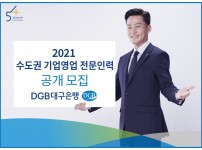 5060 新중년 퇴직직원 일자리 창출, 기업·영업점장 2년 이상 경험자 대상 수도권 대기업·중소기업 ‘직접 찾아가는 영업’ 종합 금융 컨설팅 지원DGB대구은행은 퇴직직원 채용을 통한 일자리 창출과 영업권역 확대 등을 위한 기업영업추진 전문인력을 공개 채용한다고 23일 밝혔다. 이번 채용은 ‘움직이는 모바일 지점’의 형태로 금융 컨설팅이 필요한 중소기업을 직접 찾아가는 영업 인원을 모집하는금융기관을 퇴직한 5060 신중년 세대의 재취업 기회를 제공해 실버세대 일자리 창출에 기여하고 금융기관 퇴직자의 다양한 경험과 노…