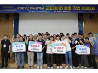 제품·서비스 개발 2팀 및 아이디어 기획 2팀 선정, 총상금 8백만 원,부문별 최우수 2팀, 행안부 범정부 대회 출전 및 멘토링 등 후속지원,대구시는 공공데이터를 활용해 스타트업의 창업과 성장을 지원하고 사회현안 해결 아이디어를 찾는 ‘2023년 대구시 공공데이터 활용 창업경진대회’를 대구디지털산업진흥원에서 개최해 수상작 4팀을 선정했다고 26일 밝혔다.이번 대회는 제11회 범정부 공공데이터 활용 창업경진대회의 지역선발 대회로, 지난 5월부터 사전 서류심사와 발표심사 등 40개 팀이 치열한 경쟁을 거쳐 최종 12개 팀(제품 및 서비…