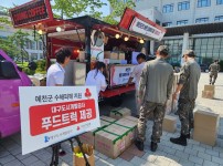 대구도시개발공사는 지난 21일, 대구사랑의열매와 함께 예천군 현장 구조인력 및 이재민을 위한 푸드트럭을 제공했다고 밝혔다.이번 지원은 최근 폭우로 정부에서 특별재난지역으로 선포한 경북 예천군에서 구조인력 및 이재민 약 1600명을 위해 푸드트럭을 급파해 샌드위치 및 음료 등 간식 세트를 지원했다. 또한 대구 사랑의열매와 협력해 수해현장의 지원 요청사항을 실시간으로 전달받고 구호활동에 도움이 되고자 신속하게 지원하게 됐다.공사는 대구 대표 공기업으로서 그동안 지역민을 위한 다양한 사회공헌 사업을 실시해 왔으며 임직원들은 ‘청…