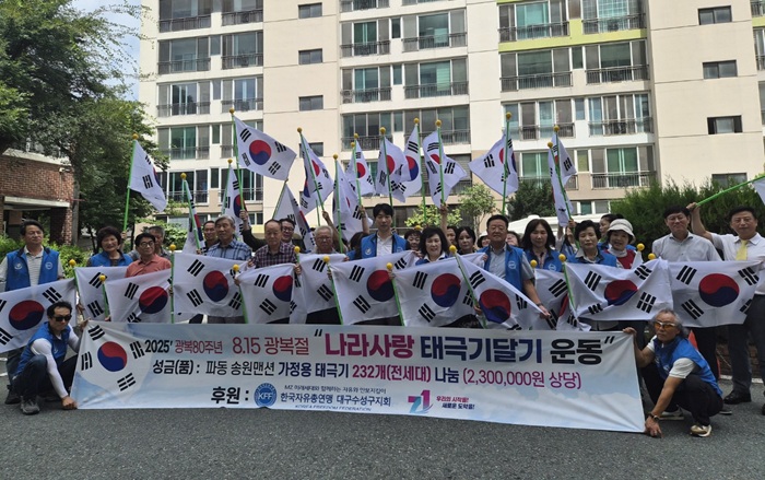 한국자유총연맹 대구수성구지회(회장 김인선)는 제80주년 광복절을 맞아 이달 11일부터 15일까지 ‘나라사랑 태극기 달기 운동’을 펼쳤다.