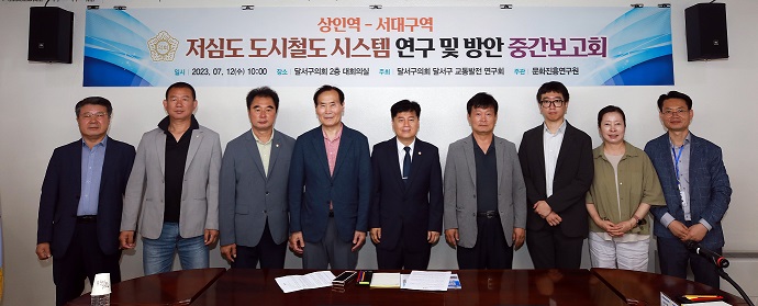 대구달서구의회 의원 연구단체 ‘달서구 교통발전 연구회’는 12일 대회의실에서 상인역~서대구역 저심도 도시철도 시스템 연구 및 방안에 대한 중간보고회를 개최했다고 밝혔다.