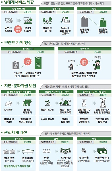 국립공원지킴이, 자연환경해설사 등 지역주민 직접고용을 통한 일자리 창출과 국립공원 내 사유지 매수사업을 통해 사유재산권 보호에도 앞장설 계획이다.