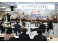 대구시는 22일 군위군청에서 오는 7월 1일 군위군의 대구 편입과 관련해 김종한 행정부시장과 경북도 김학홍 행정부지사, 군위군 이상현 부군수가 참석한 가운데 군위군 대구시 편입 공동협의회 첫 회의를 개최했다고 밝혔다.